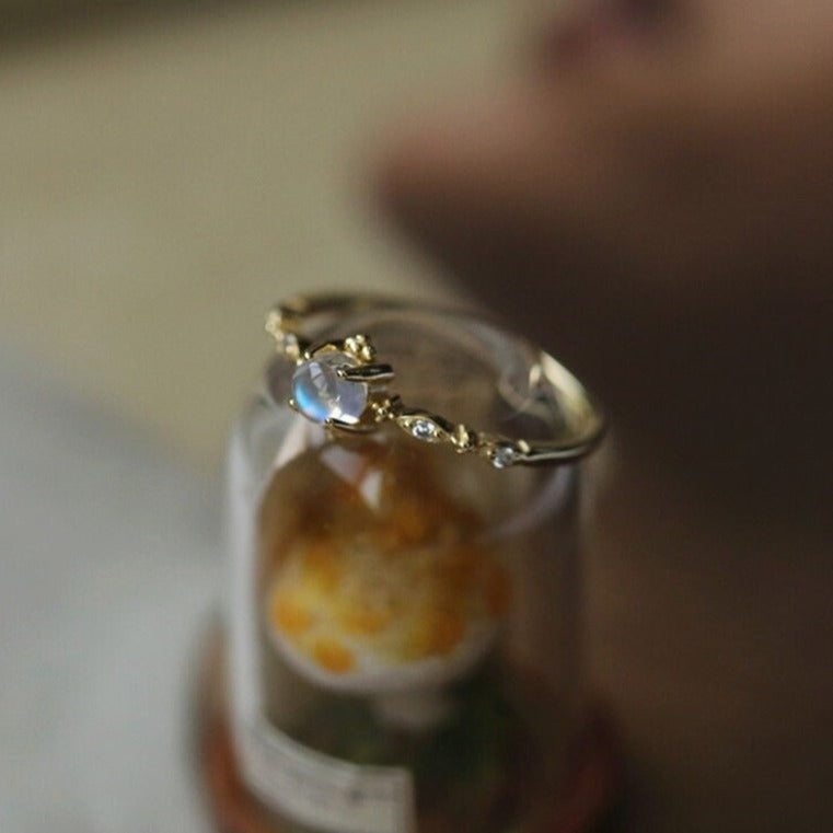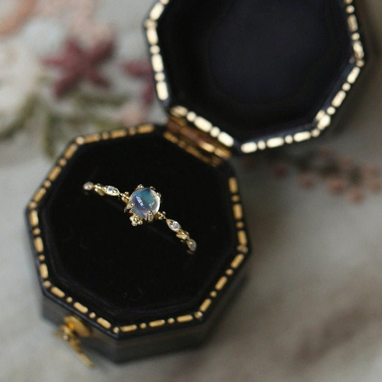 Introducing our Feyre's Dainty Moonstone Promise Ring, a stunning piece inspired by the magical world of A Court of Thorns and Roses. This dainty ring features a luminous moonstone set in 925 sterling silver, with the option of elegant 14K gold plating. Perfect for engagements, anniversaries, or as a cherished gift, this ring embodies the beauty and mystique of Feyre's journey.